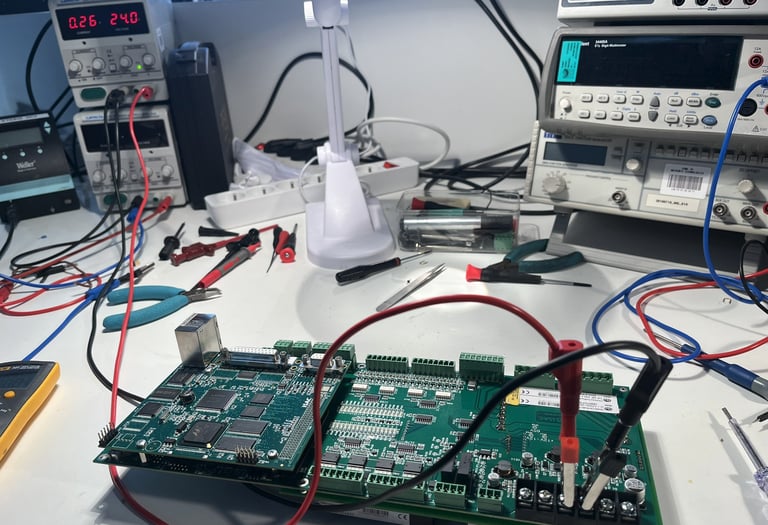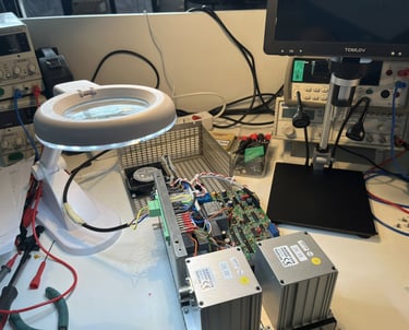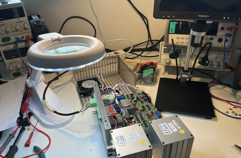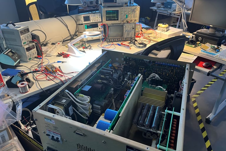 Exemples de diagnostics et réparations réalisés sur des équipements électroniques en environnement industriel.